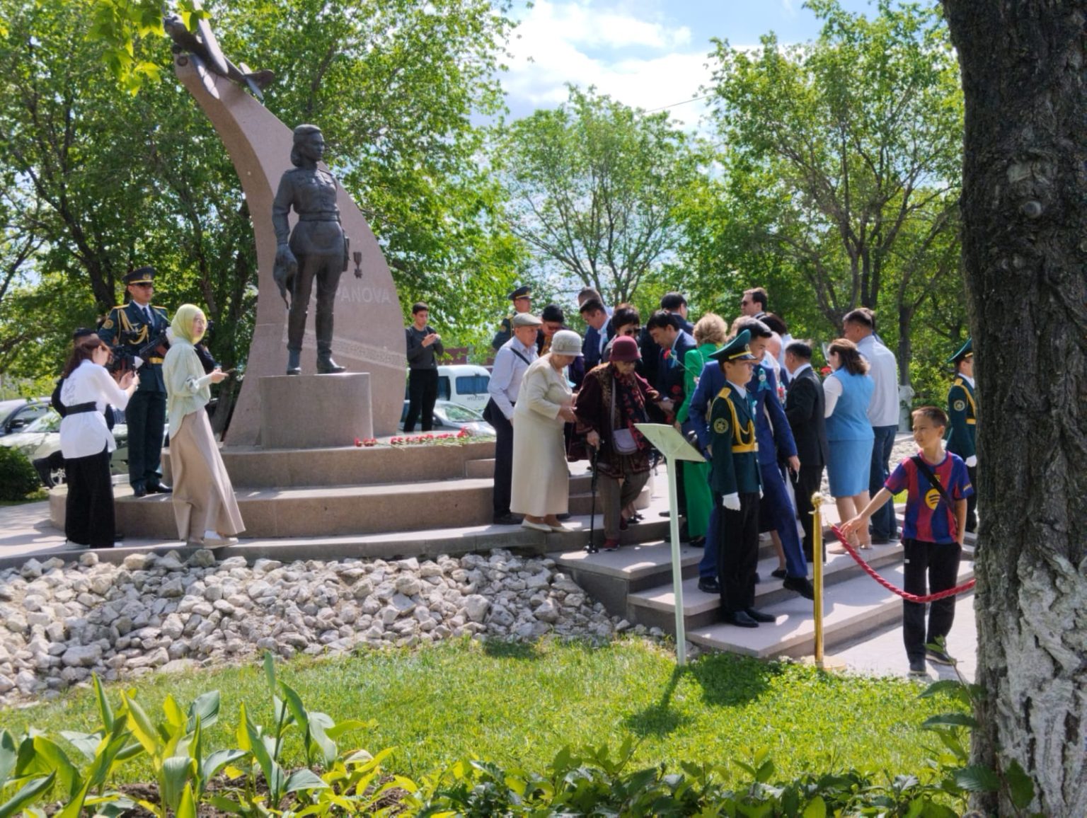 Сегодня, 9 Мая, в День Победы, в международном аэропорту Атырау состоялась торжественная церемония возложения цветов к памятнику Народному герою Казахстана, участнице Великой Отечественной войны Хиуаз Доспановой.