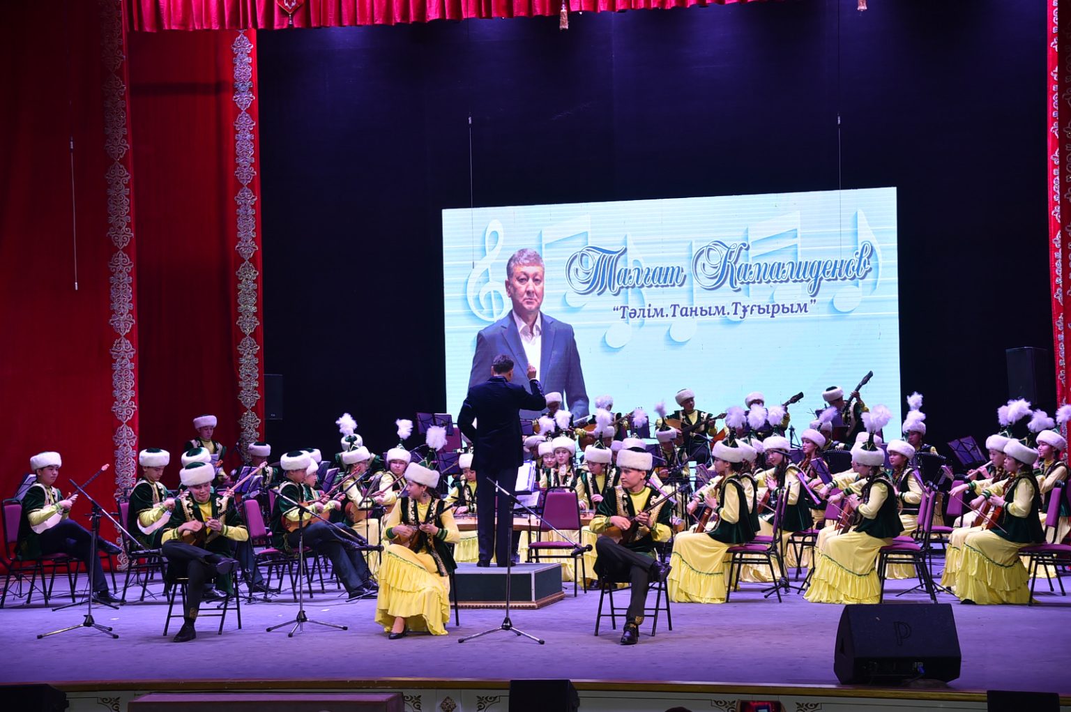 Всеми этими качествами Т. Камалиденов обладает сполна. Вместе с коллективом ему посчастливилось дать сотни концертов, посетить практически все города Казахстана, побывать далеко за пределами нашей страны. Сегодня Талгат Анесовч готовит юных музыкантов, которые из разных континентов возвращаются домой с наградами. Именно они, его ученики из школьного фольклорного оркестра имени Н. Тлендиева, открыли концерт «Тәлім. Таным. Тұғырым», в котором приняли участие известные в республике музыканты, гости из разных регионов. Среди них – декан кафедры казахских национальных инструментов национальной консерватории имени Курмангазы, заслуженный деятель РК, Почетный гражданин Атырауской области Карима Сахарбаева, музыканты и исполнители: Куаныш Жумагалиев, Еркин Нурымбетов, Салимгерей Садыков, Курманбек Жугинисов, Жазира Ауэзова и многие другие. На концерте свои возможности показали учащиеся гимназии – хореографический ансамбль «Қазына», ансамбль кобызистов «Сұлухан» и многие другие.